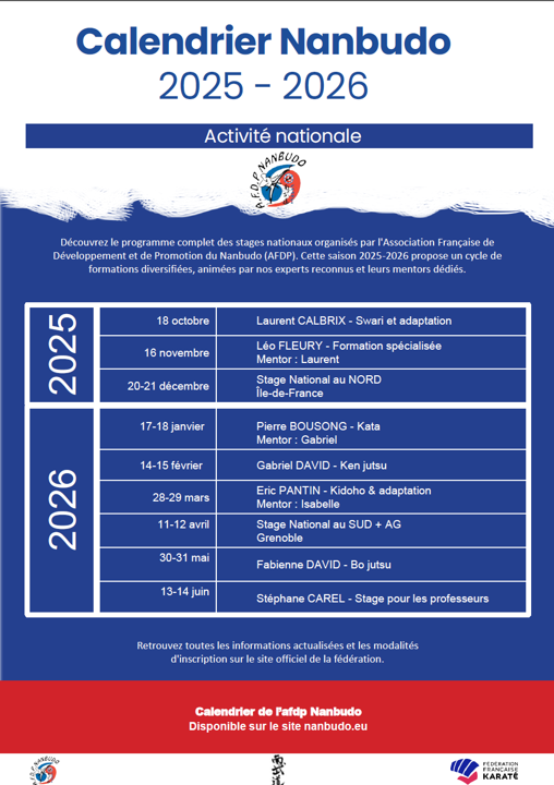 Retrouver toutes les dates des événements de l'AFDP Nanbudo