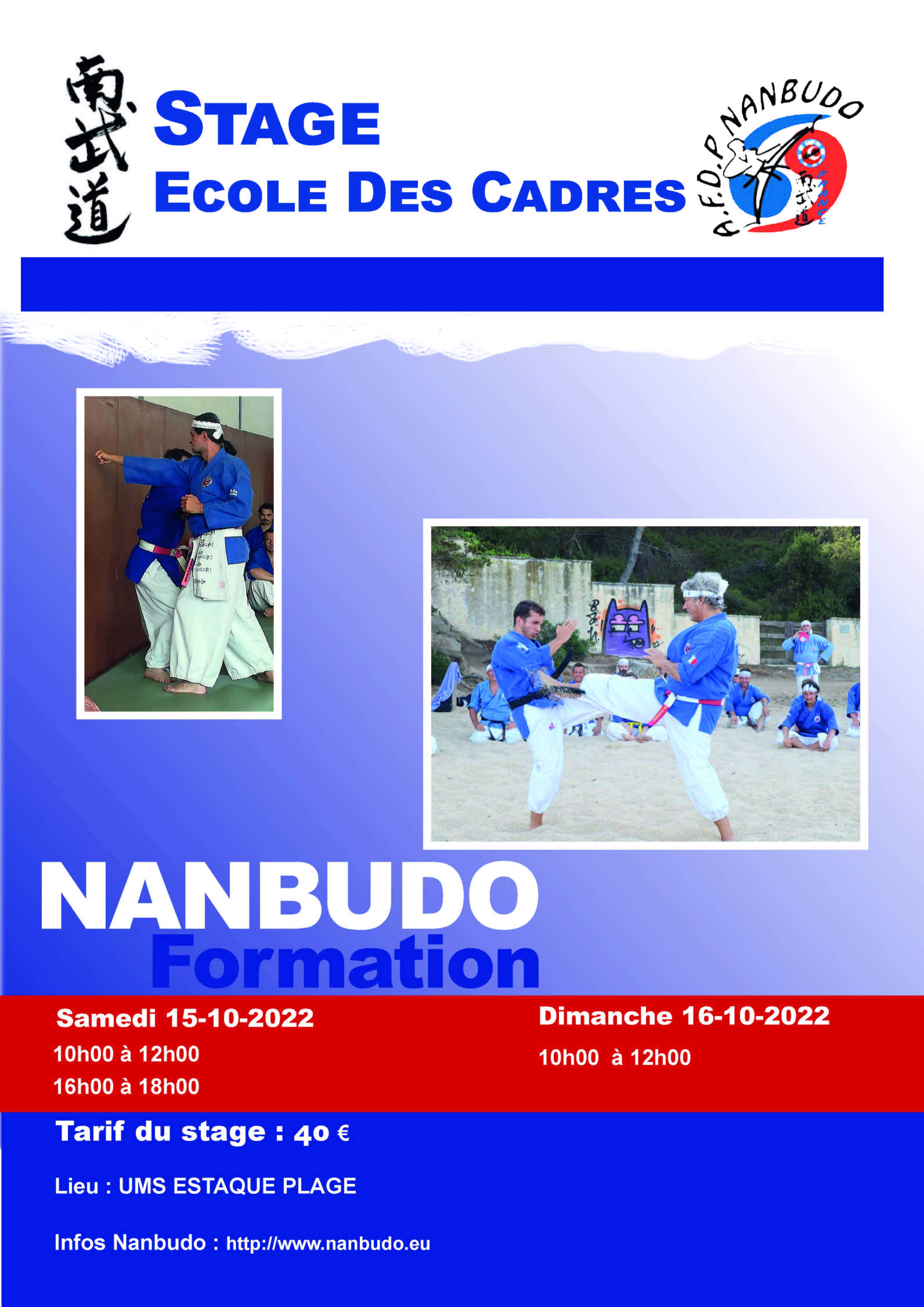 | 2022-10-15 | 10:00 - 18:00 | Dojo Bunkai | Stage école des cadres |